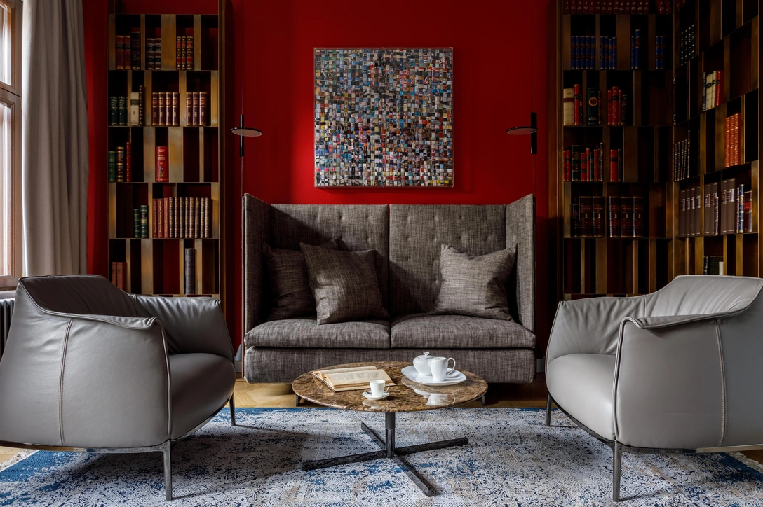 Особняк находился в плачевном состоянии. Дизайнеры скрупулезно восстанавливали исторические дубовые полы, подбирали для дверных проемов дубовые двери, реставрировали гипсовую лепнину. Руководитель бюро Марианна Петренко лично «поднимала» и изучала все старые слои штукатурки, чтобы найти исторические цвета, в которые были выкрашены стены особняка в XIX веке.