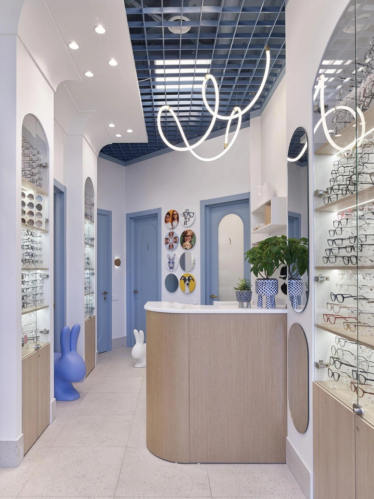 Небольшая офтальмологическая клиника и салон очков «МосОптика» для взрослых и детей расположена в новом ЖК «Варшавская Life» на юге Москвы. Задача перед командой стояла не из простых: на скромной площади (48 м2) необходимо было разместить три кабинета, ординаторскую, зону ресепшена, зону ожидания для пациентов, витрины с очками и с/у. Вымеряли и взвешивали каждый сантиметр. Кроме того, заказчики хотели получить модный интерьер, который был бы привлекательным как для семей с детьми, так и для других посетителей.