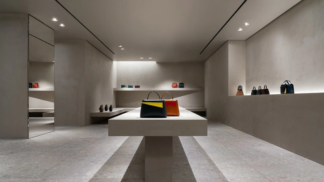 В каждой детали интерьера виден почерк Поусона: серые голые стены, натуральный камень, аскетизм в декоре. Небольшие аксессуары выставлены на полках со скрытой полосой освещения, а сумки, разделенные по коллекциям, — на массивных выступах и столах. Зеркала от пола до потолка создают иллюзию большого пространства. «Моя главная задача сделать так, чтобы покупатели чувствовали себя комфортно и продукт выглядел наилучшим образом, — поясняет Поусон, ссылаясь на свои прошлые коллаборации с Calvin Klein, Christopher Kane и Jil Sander. — Это, конечно, не галерея, а магазин, но очень важно представить аксессуары как произведения искусства. Серый — нейтральный, но в то же время очень красивый цвет, на фоне которого и яркие, и черные сумки выглядят эффектно». www.johnpawson.com