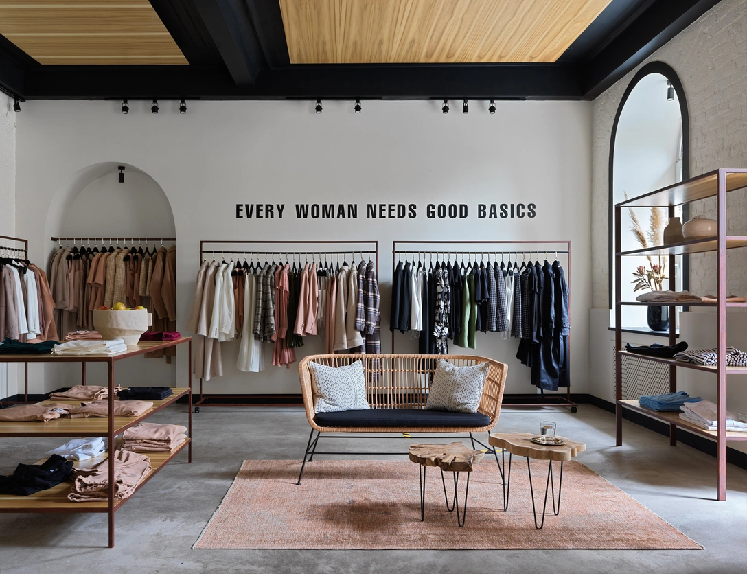 Целевая аудитория российской марки одежды Selfmade — молодые активные женщины, которым важна работа и карьера. Интерьер флагманского магазина бренда решено было сделать им под стать. Нежные «женские» природные оттенки здесь соседствуют с «прямолинейной» мебелью: стойка ресепшн, стеллажи, стол-остров подчеркивают сдержанность и строгость проекта.
