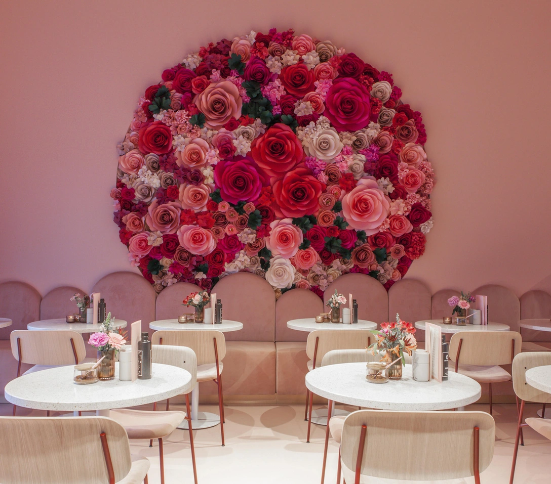В интерьере использованы, кажется, все оттенки розового, но при этом пространство не выглядит приторным. Многие элементы декора и предметы мебели были выполнены на заказ специально для этого проекта — от кубических кофейных столиков из терраццо до причудливых светильников. wewantmore.studio