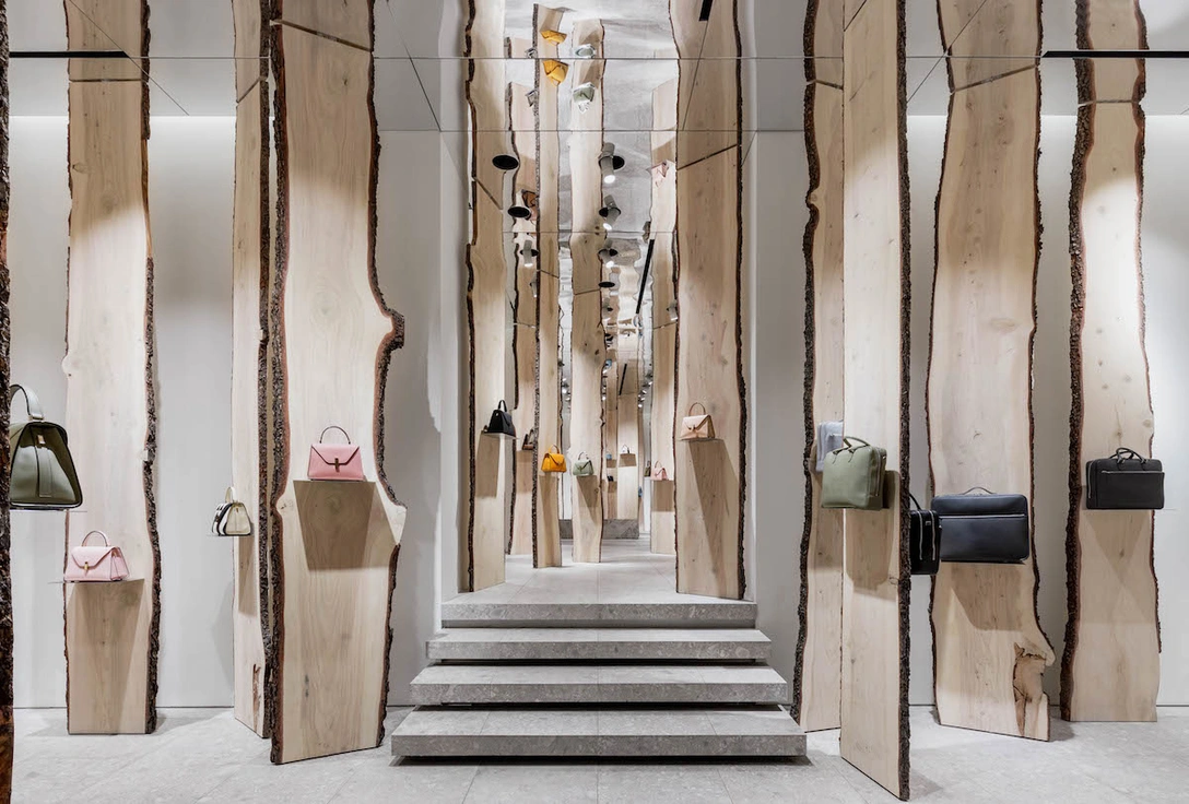 Всем, кто собирается в Милан, советуем зайти во флагманский шоу-рум Valextra на via Manzoni — это место наверняка станет одной из главных звезд Instagram (запрещенная в России экстремистская организация) миланской недели дизайна. Для демонстрации осенне-зимней коллекции 2018 марка пригласила японского дизайнера и архитектора Кенго Куму, который превратил бутик в волшебный лес. И в архитектуре, и в дизайне Кума — апологет натуральных, экологичных материалов, бетону и пластику он предпочитает дерево, бамбук, камень. В оформлении бутика дизайнер использовал кедровые доски с живописной текстурой и зеркала, создающие оригинальную игру отражений и превращающие пространство в замысловатый лабиринт.
