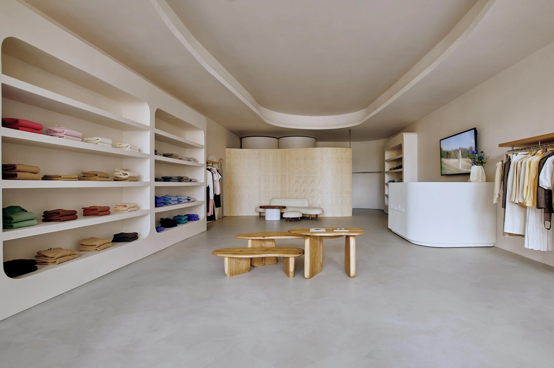 «Материалы мы выбирали по такому же принципу, как происходит отбор материалов для коллекции. Какой-то гладкий и шелковистый, какой-то более шероховатый, а где-то видны волокна — как в тканях, которые мы любим за фактуру».