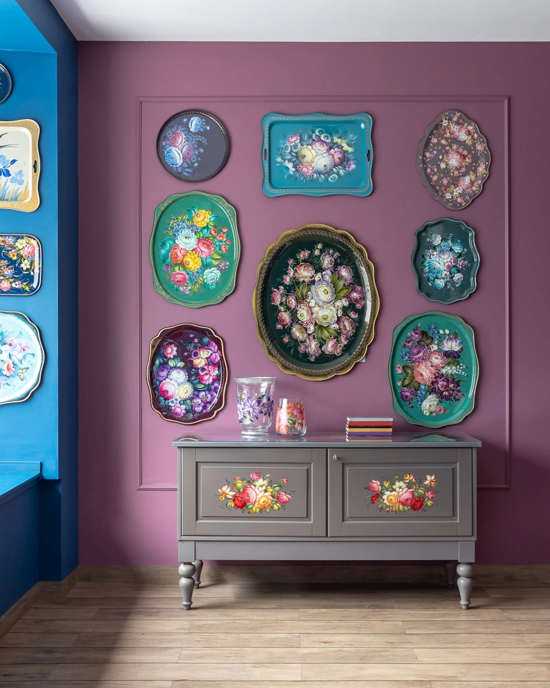 Зонирование и колористическое решение пространства разработаны так, чтобы максимально эффектно представить продукцию Жостовской фабрики покупателям — чтобы сразу с порога они понимали: изделия народных промыслов могут быть модными, актуальными и отлично смотреться в современной обстановке.