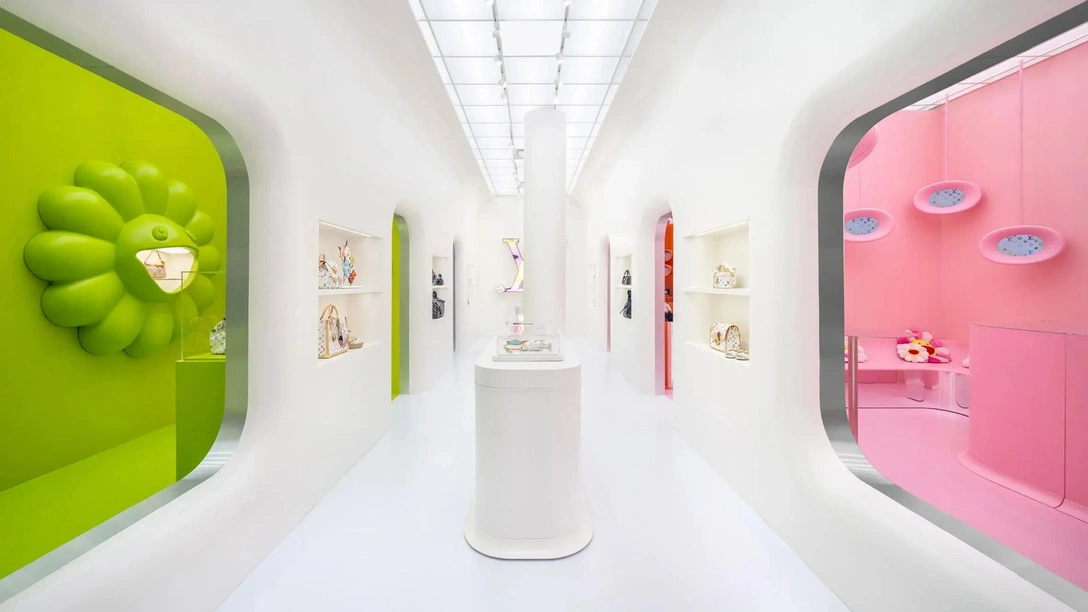 Расположенный в районе Сохо в Нью-Йорке, временный магазин отсылает к коллаборации с художником Такаси Мураками Louis Vuitton x Murakami 2003 года, предлагая обновленные и оригинальные версии сумок, аксессуаров и других предметов, выставленных в небольших монохромных зонах яркого цвета.