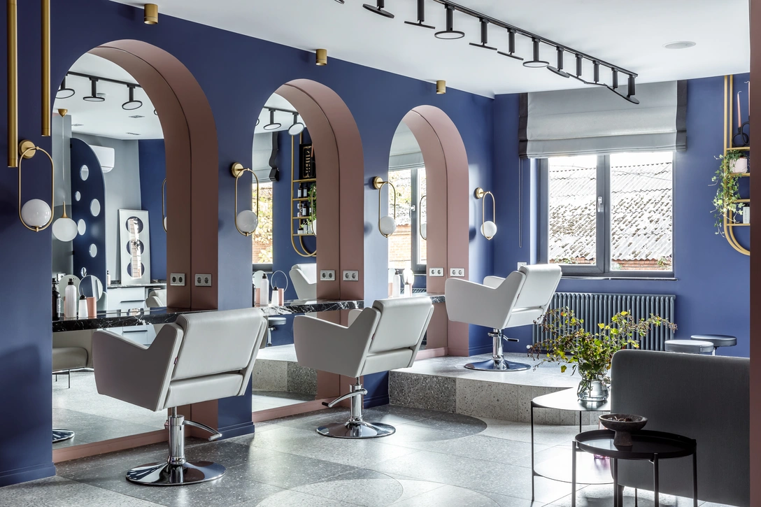 Слоган салона — «открой секрет красивых волос». Первый логотип компании выглядел как замочная скважина, через которую можно заглянуть в тайную комнату Hair Room и узнать секрет роскошных волос. И хотя логотип со временем изменился, эту атмосферу женской тайны дизайнеру хотелось сохранить. Так появились двери-невидимки, спрятанные в нарисованных на стенах арках, овалы и круги на полу, которые перетекают друг в друга и отражаются в зеркалах, создавая оптические иллюзии. За счет этой хитроумной игры отражений центральная несущая колонна иногда кажется практически растворенной в пространстве.
