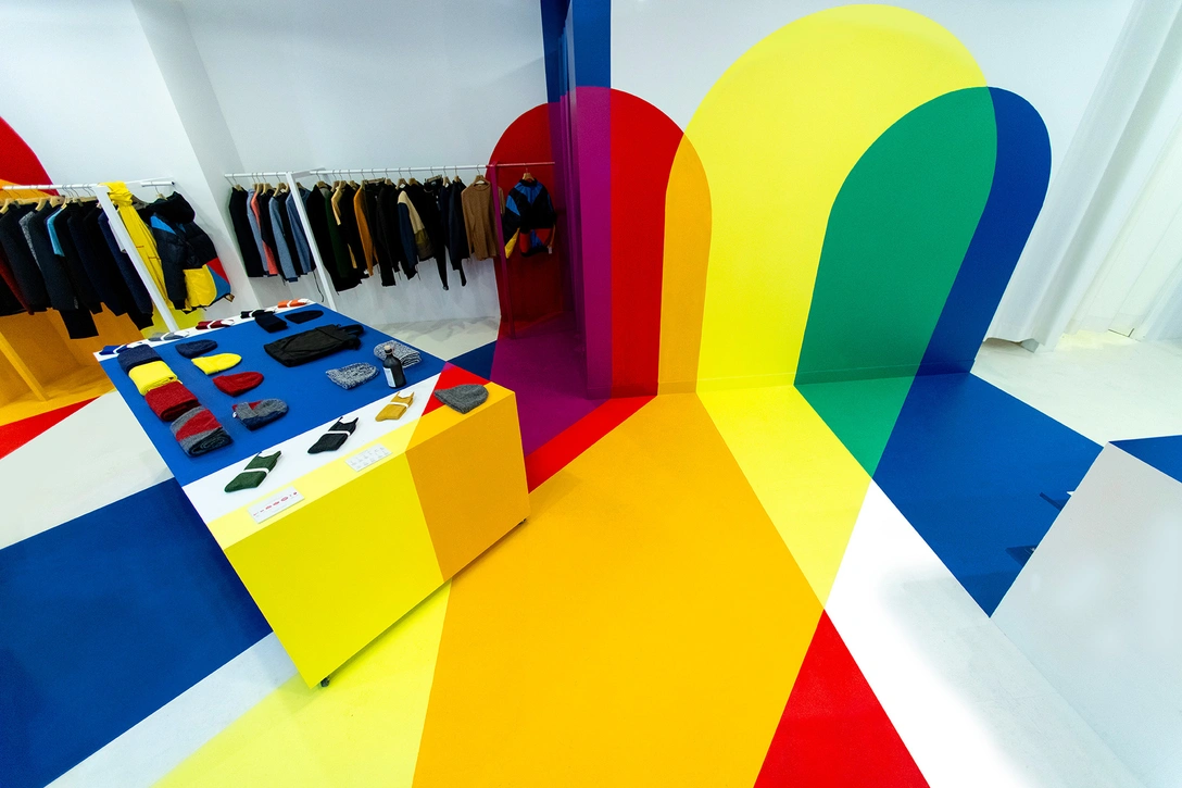 Всегда интересно узнавать у дизайнеров, где они черпают вдохновение для создания интерьеров. Это может быть что угодно — от предметов искусства до чего-то совсем эфемерного и нематериального. Автор проекта нового бутика на Елисейских полях, бюро Studio Malka Architecture, признался, что яркий облик интерьера навеян логотипом аэрозольного баллончика Krylon. На самом деле отсылка к граффити имеет смысл: бренд мужской одежды Homecore первым во Франции начал выпускать streetwear-одежду около 25 лет назад. «Это своеобразная ода культуре граффити, девиз которой Peace, Love, Unity and Having Fun», — поясняет основатель студии Стефан Малка (Stéphane Malka).