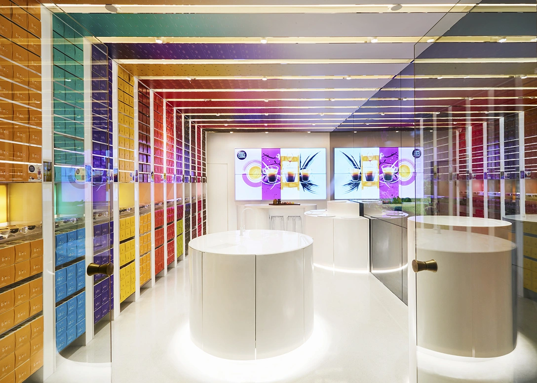 Компания Nestlé обратилась к SODA Architects с идеей открыть сеть концептуальных бутиков для своего бренда Nescafé Dolce Gusto. Дизайнеры Юань Цзян (Yuan Jiang) и Чен Сонг (Chen Song) знали, что им нужно придумать что-то более интересное, чем очередная кофейня на оживленной улице Хуайхай в центре Шанхая. «Отправной точкой для дизайн-концепции стали сами кофейные капсулы», — дополняет Цзян.