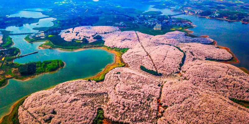 Не секрет, что одна из главных природных достопримечательностей Китая — вишневые сады, полюбоваться на которые со всех уголков планеты ежегодно съезжаются толпы туристов. Самый горячий сезон — конец марта и первая половина апреля. Чтобы застать во всей красе и увидеть своими глазами пышное цветение вишни, а также абрикосовых и персиковых деревьев и азалии, многие бронируют билеты за полгода. В этом году зрелище стало одним из самых впечатляющих, о чем свидетельствуют эти кадры, сделанные с разных ракурсов — в том числе при помощи запущенных в небо дронов, запечатлевших картину с высоты птичьего полета. По свидетельству очевидцев, в округе Пинба одновременно цветут более 500 000 вишневых деревьев.