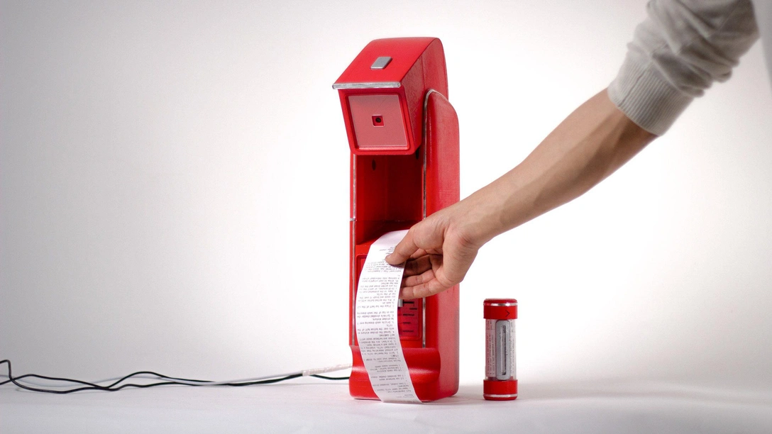 Рецепт печатается на бумаге и напоминает чеки, их можно хранить в прозрачном тубусе снизу. Пейн и Махмуд осознанно не внедряли в технологию экран — кнопочное управление, по их словам, придает прибору особый шарм. Все это вписывается в общий тренд на ностальгию.