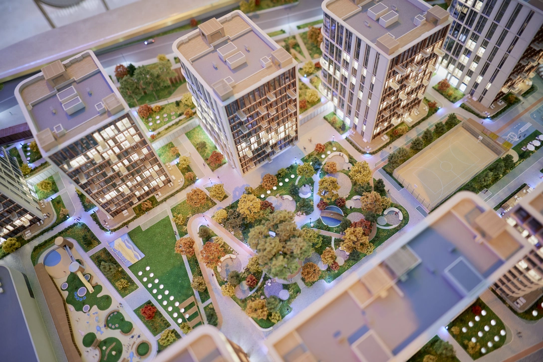 Макет нового элитного жилого комплекса Victory Park Residences в Москве