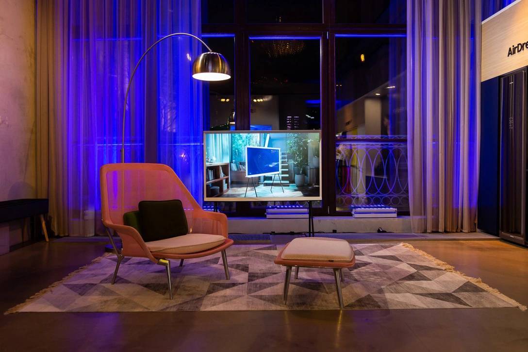 В интерьерных инсталляциях, объединенных общей темой «Интерьер с твоим характером», гости познакомились с моделями телевизоров The Frame, которые в выключенном состоянии превращаются в картину в интерьере, и телевизоров The Serif, созданными звездами мирового дизайна братьями Буруллек.