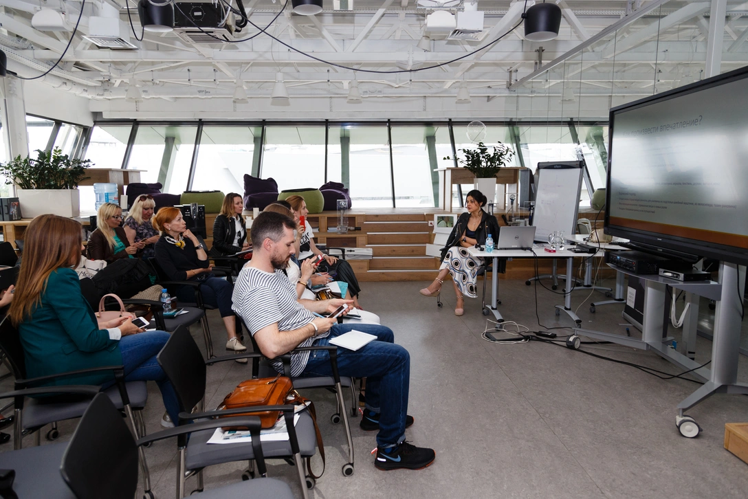 Декоратор Женя Жданова провела лекцию об эффективных решениях в оформлении ванных комнат на примере собственных проектов.