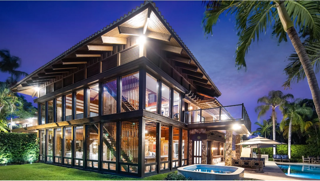 В объявлениях о продаже отмечают историю этого дома, который когда-то принадлежал музыканту кубинского происхождения Вилли Чирино (Willy Chirino), а также его архитектуру, напоминающую творения американского архитектора-модерниста Фрэнка Ллойда Райта (Frank Lloyd Wright). В здании много панорманых окон, и оно не похоже на типичные белые виллы, которые можно встретить в Майами. Окна обрамлены темным натуральным деревом, в отделке дома использован камень. На участке рядом с домом есть сад с баром и бассейном, а также пруд с карпами.