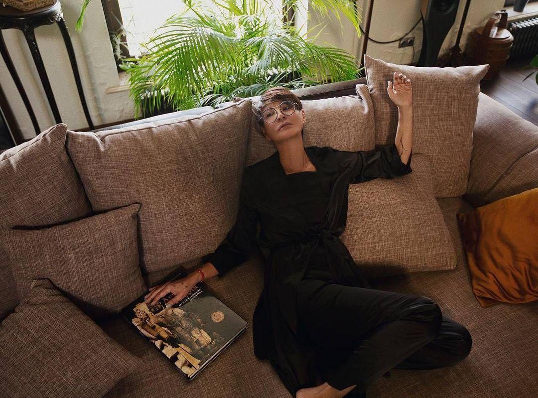В этом интерьере, наполненным современным искусством и дизайн-объектами вроде винтажного красного кресла или знаменитого торшера Arco братьев Кастильони (очень надеемся, что это оригинал), Ирина записывает свой онлайн-марафон — коротенькие видео-выступления на разные темы. Как научиться жить для себя. Как не терять интерес к жизни. Как не заржаветь и не стагнировать. Все эти вопросы сводятся к одному, главному — как найти себя?