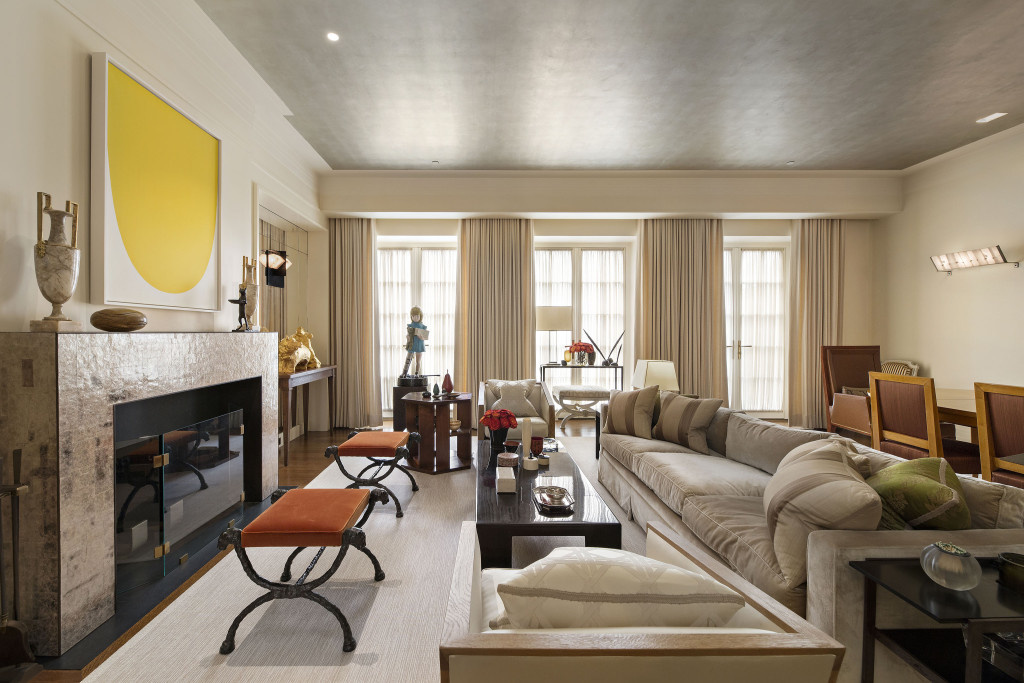 Главная спальня с отдельной гостиной, выложенной мрамором ванной и гардеробной из красного дерева занимают целый этаж. Джейкобс очень тщательно подходил к выбору декора, но не ограничивал себя какими-то рамками стиля или эпохи: в интерьере уживаются и мебель в духе ар-деко, и предметы 1970-х годов, и произведения современного искусства. Последний пункт, кстати, не включен в продажу.