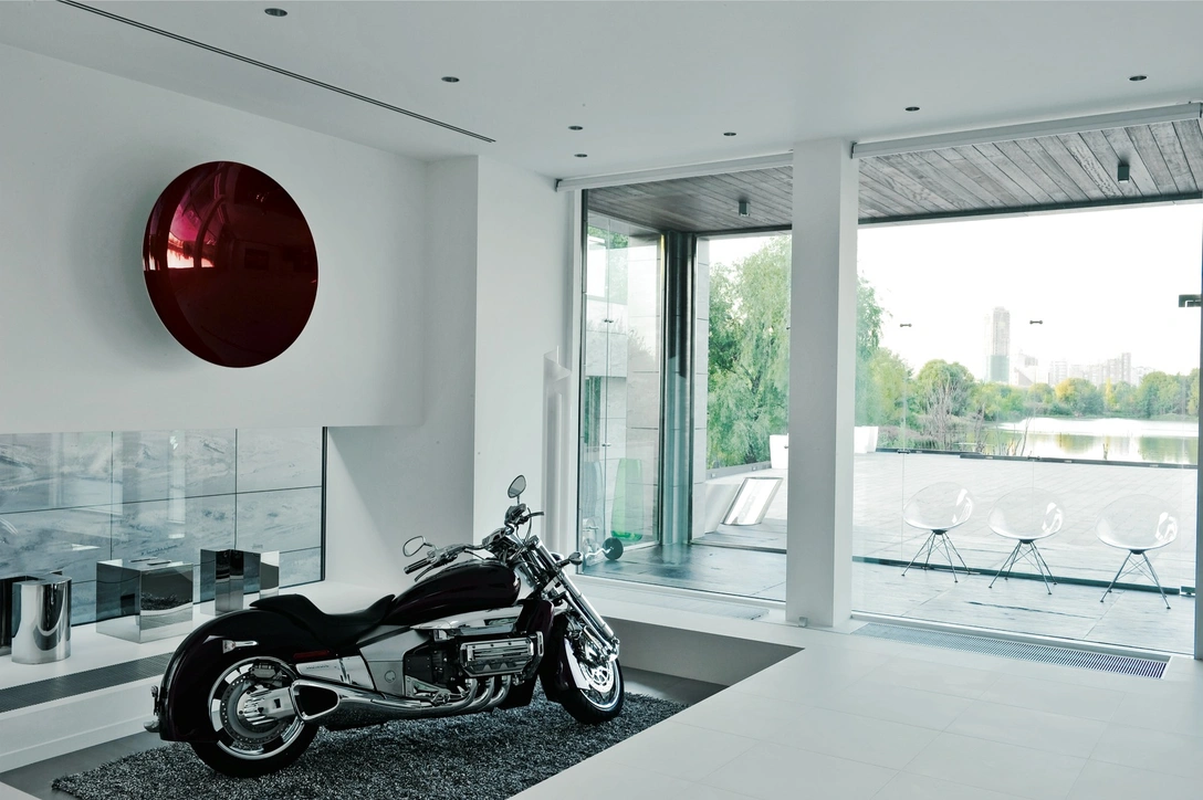 АЛЬДО РОТА: Думаю, белизна выражает идею пустоты, переходящей в живую природу. Здесь же удивительное место! Вода, трава, животные. Никогда и не скажешь, что ты в Москве. Отсюда до центра минут 20 на машине. Так вот, эта идея естественного перехода жилого пространства в природную среду очень современна. Ну а в этом доме, если вы заметили, все завязано на современности.