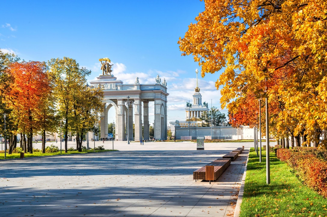 Золотисто-оранжевая «Золотая осень», красная «Роза четырех ветров», розово-абрикосовая Geisha, пурпурно-красная Gospel с густо махровыми цветами старомодной формы, двуцветная, бархатисто-красная с желтой изнанкой Eddy Mitchel и желто-розовая Gloria Dei — лишь малая часть впечатляющего розария ВДНХ.