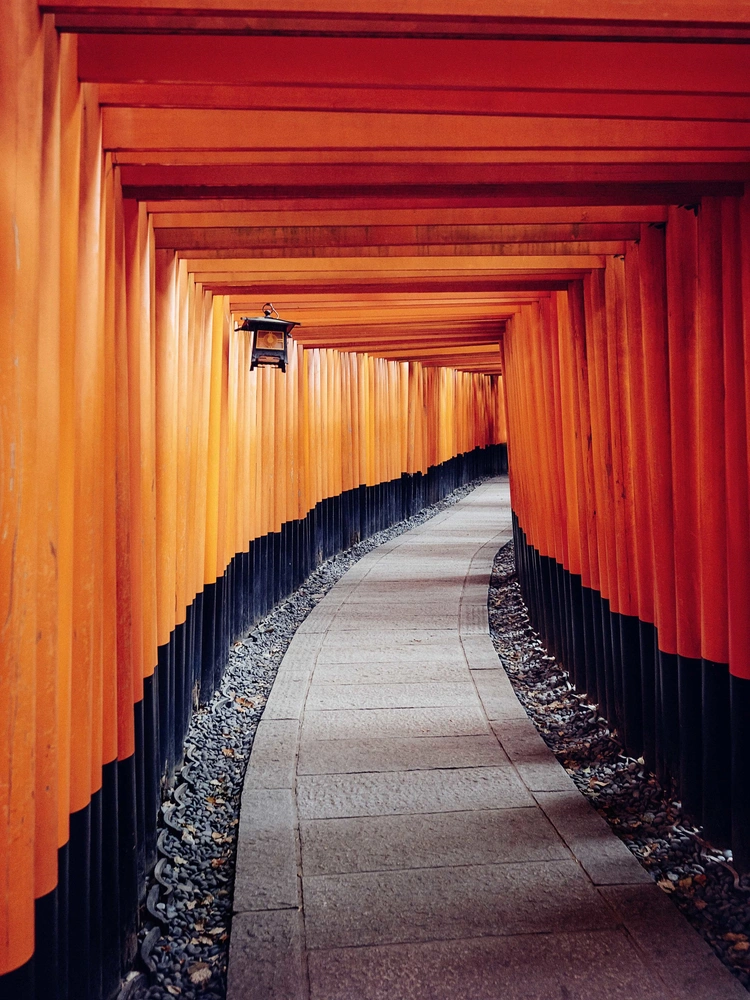 Храм посвящен богине изобилия, риса и в целом бытового благополучия — Инари. Место заряжает и вдохновляет, обязательно заезжаю сюда каждый раз. На входе вас встречают строгие статуи лисиц-кицунэ, а потом — бесконечные красные коридоры. Это очень эффектно!