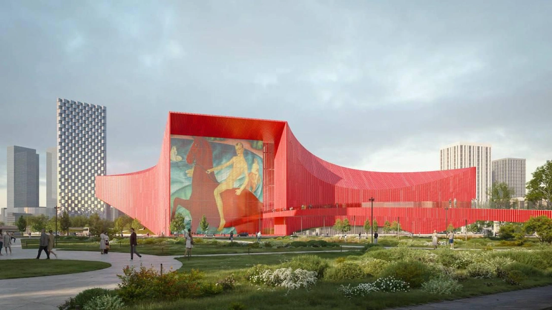 Здание депозитария станет одной из архитектурных доминант района: внушительный объем динамичной формы и ярко-красного цвета, напоминающий об экспериментах русского авангарда, сложно не заметить на фоне нейтральных многоэтажек. На красных фасадах разместят огромные медиаэкраны, где планируют показывать культурные события, анонсы мероприятий и шедевры русскоо искусства.
