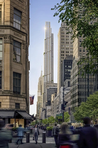 За проектом многофункционального небоскреба высотой 305 метров на Манхэттене стоит архитектурное бюро Kohn Pedersen Fox (KPF). Объем башни формируется за счет серии сетбэков (уступов), которые сужаются по мере увеличения высоты. Функциональное наполнение здания разделено по вертикали: нижние уровни отведены под коммерческие площади и люксовые офисы, а верхняя часть отдана под частные резиденции. Особое внимание уделено экологической составляющей: каскадные сады на террасах способствуют естественному охлаждению фасада.
