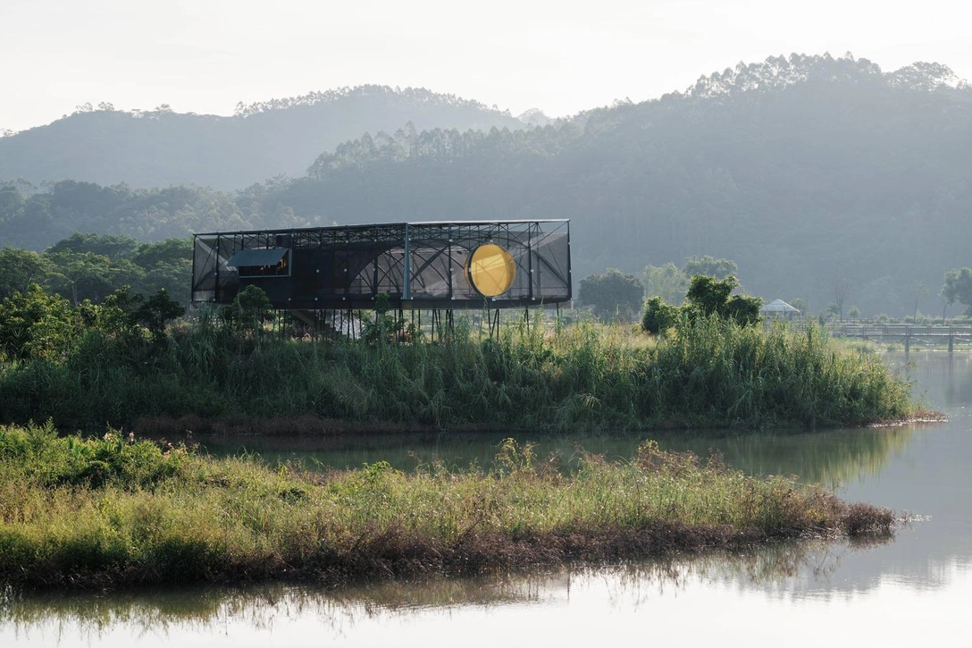 «Лунный павильон» был задуман Atelier Guo в ответ на древнекитайское стихотворение, изображающее поэта, опьяненного и улыбающегося посреди цветочного поля. Вместо того чтобы буквально перевести этот образ в архитектурную форму, дизайнеры использовали заброшенную теплицу, добавив пространственные и образные мотивы — воды, луны, цветов и лодки.