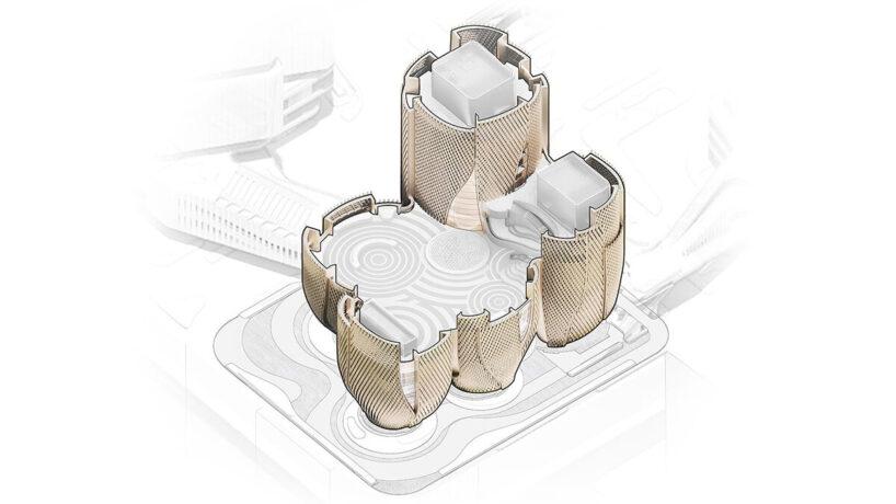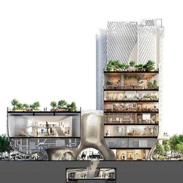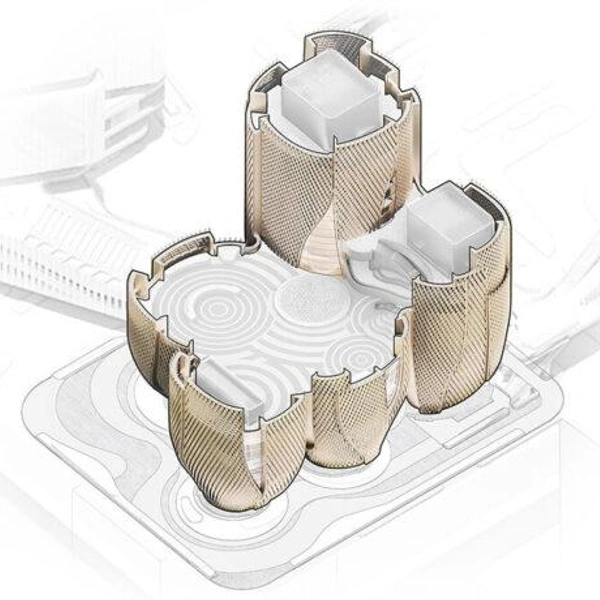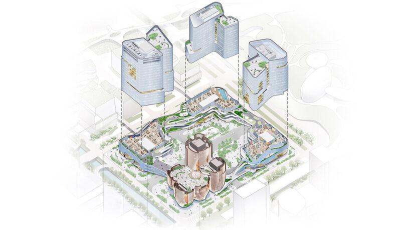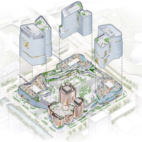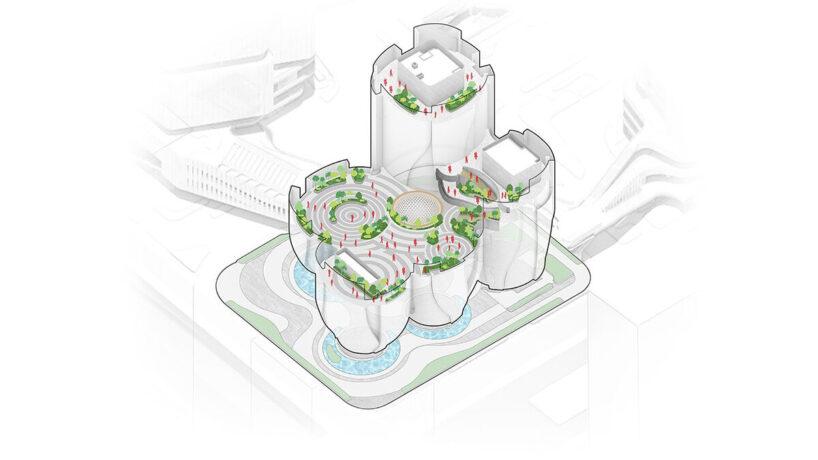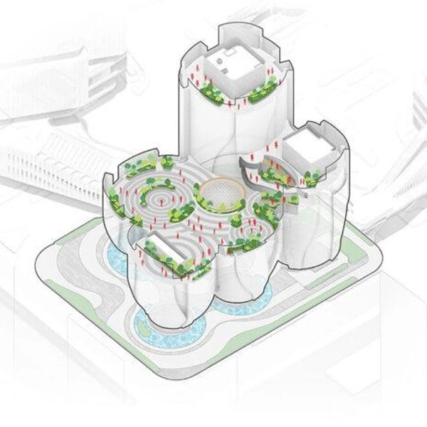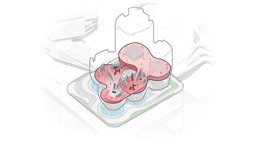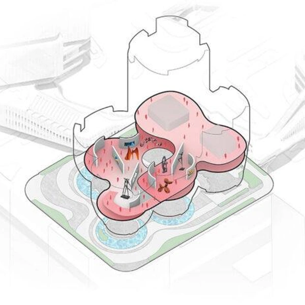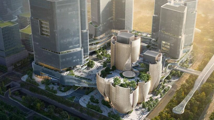 Шэньчжэнь — город, где технологический рост напрямую влияет на появление новых культурных пространств. Музей Rong — один из таких проектов. Пять выставочных павильонов приподняты над землей. Они расширяются кверху, создавая под собой открытую площадь.