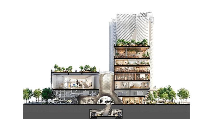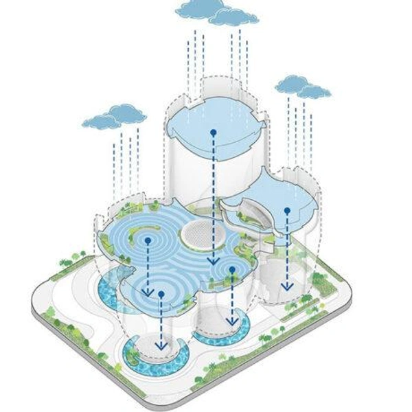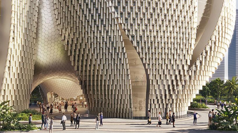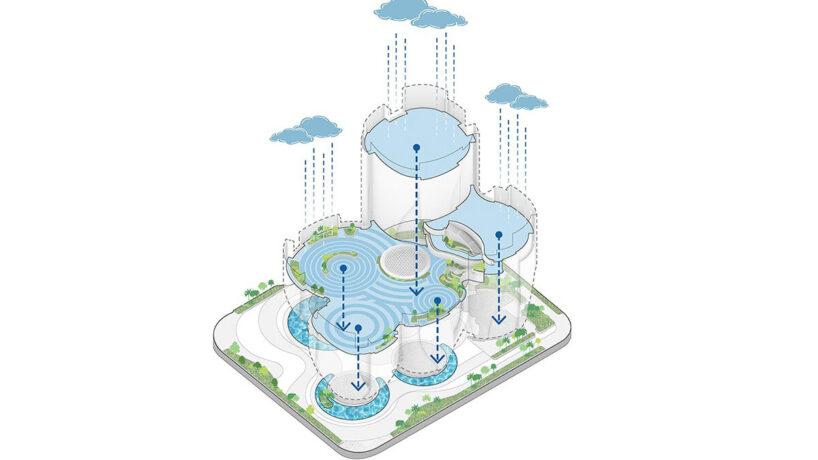 Стеклянные трубки выполняют несколько функций. Расстояние между ними позволяет воздуху циркулировать, а плотность обеспечивает затенение, что снижает нагрузку на системы кондиционирования. Верхние поверхности здания собирают дождевую воду и направляют ее в резервуары на уровне земли для повторного использования.