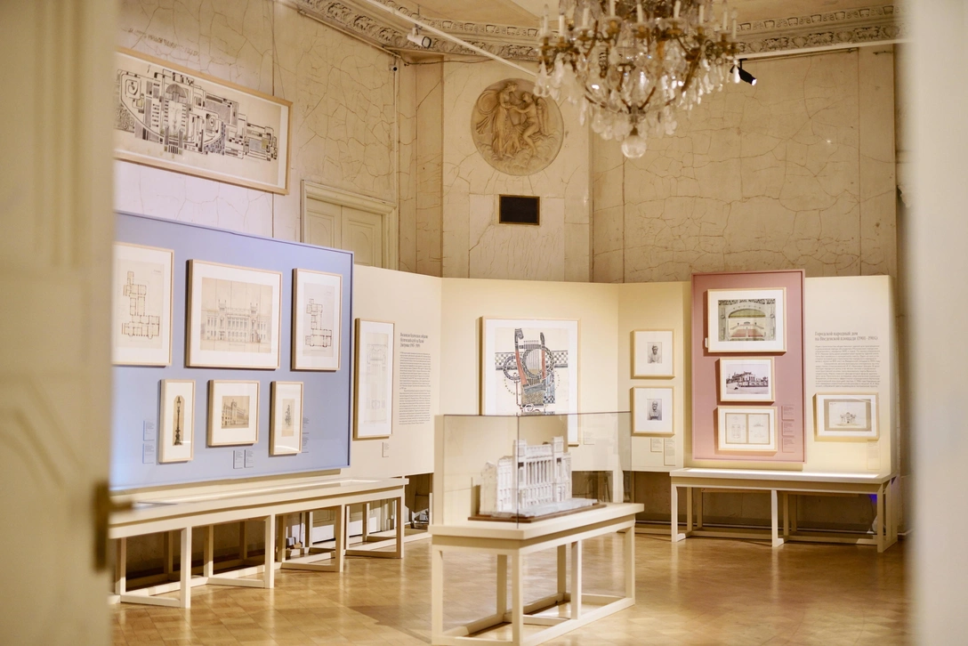 Из зала в зал (а разделов всего семь) видна постепенная смена стилистического курса — от модерна и неоклассицизма до конструктивизма, причем в каждом проекте читается почерк автора. Ближе к концу вы увидите один из вариантов проекта клуба профсоюза металлистов в Подольске. В нем можно заметить переосмысленные мотивы дореволюционного творчества архитектора.