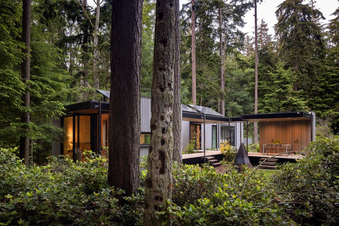 Whidbey Puzzle Prefab — это пилотный проект дизайн-студии Wittman Estes из Сиэтла, которая поставила перед собой задачу создать дом с нулевым выбросом углерода. Компактный прототип, расположенный на острове Уидби в штате Вашингтон, состоит из четырех модулей с разным назначением, которые можно переставлять в любом порядке, адаптируя конструкцию под ландшафт участка и собственные потребности.