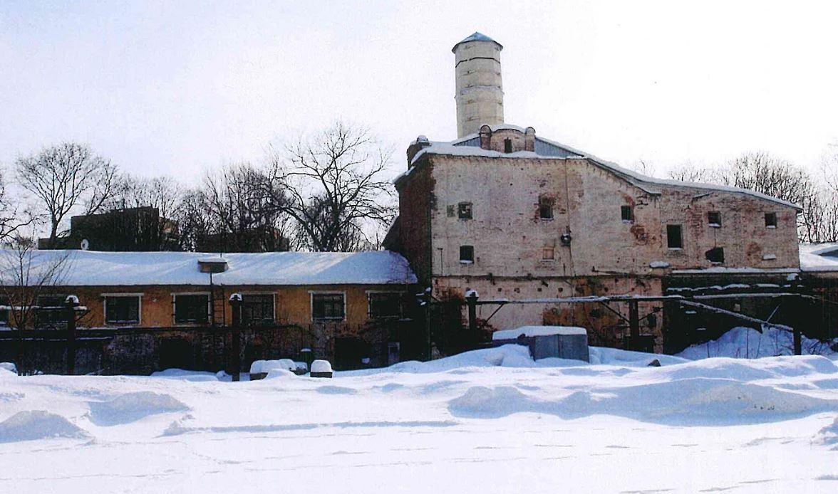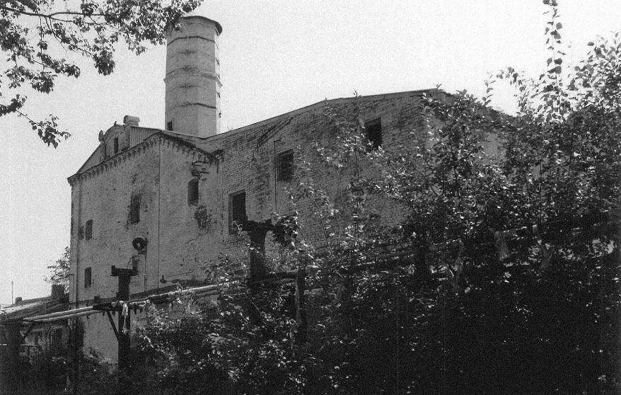 Здание «Солодовни» до реконструкции. На фотографиях 2009–2010 годов здание узнать можно только по высокой трубе. Труба печи для зерна и скошенная крыша над лестницей овина придавали зданию живописный силуэт и выделяли в панораме застройки квартала.