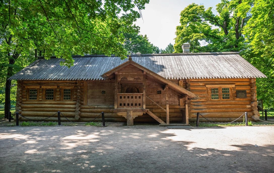 Эта деревянная изба была построена в устье Северной Двины для Петра Первого, где царь провел два летних месяца в ожидании повторной осады Архангельска. Он следил за строительством Новодвинской крепости и контролировал спуск на воду новых кораблей. Изначально домик стоял в Корабельном рукаве на острове Маркова — место, которое часто подтапливалось наводнениями.