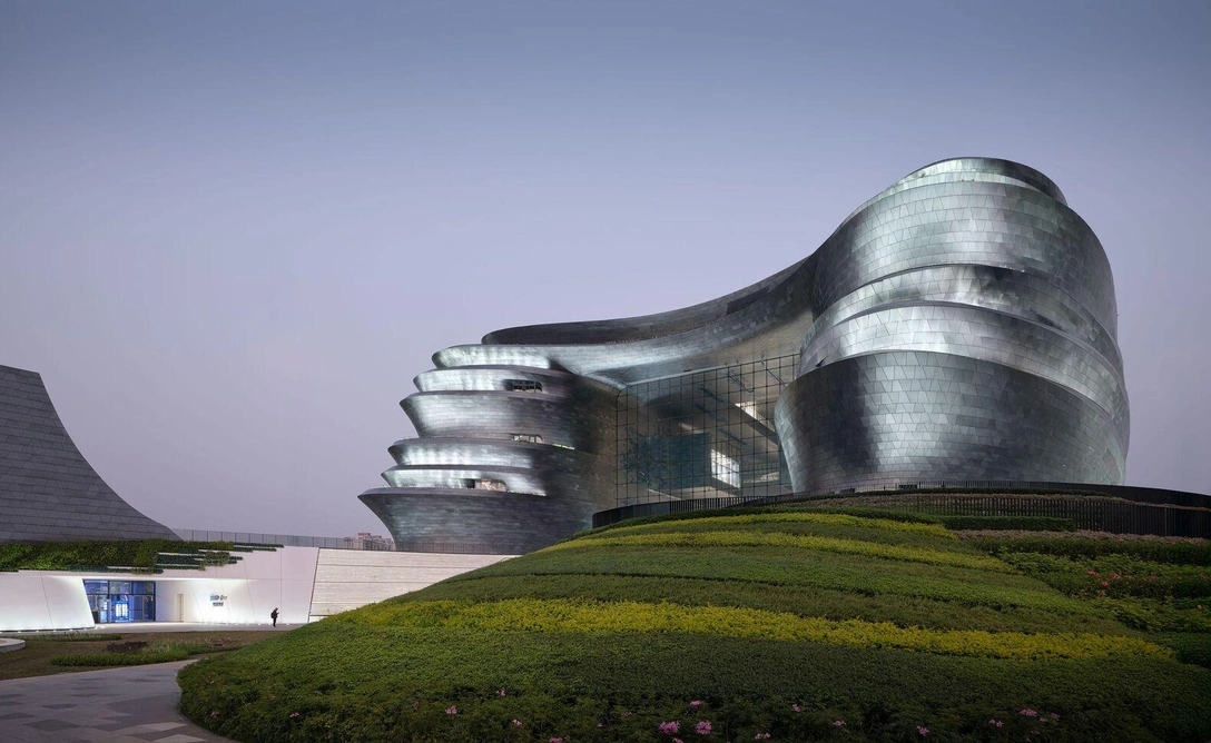 Со стороны улица музей предстает как стальная сфера, а со стороны парка открывается к природе рядом волнообразных террас. Фасады покрыты двухцветной оболочкой из стали с градиентом от темно-синего до серого, напоминая движение небесных тел. От основного корпуса в парк расходятся галереи и общественные открытые пространства, связывающие архитектуру с окружающим ландшафтом.
