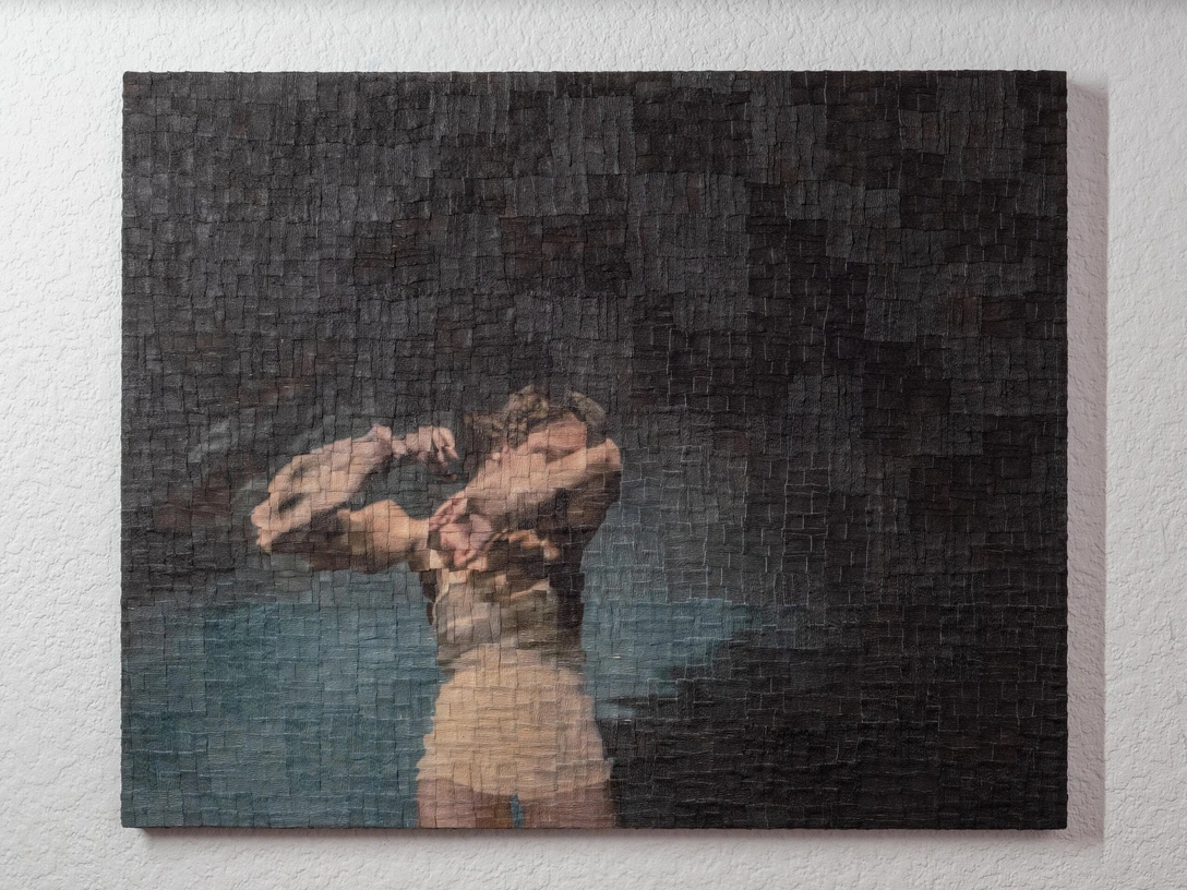 Присмотритесь к его работам: как художник создает это мерцание на грани реальности и абстракции? Не напоминают ли они вам ваши собственные воспоминания, то, как они плывут в ваших мыслях? К такому интересному эффекту Шишкин пришел из своей фотографической практики. Он создал авторскую технику коллажа: фотография печатается на гофрированной малярной ленте и нарезается на сотни фрагментов. Они деформируются, а потом художник снова собирает их вручную. «У каждого своя музыка и свое место и время для ферматы. Образ, следующий от работы к работе, подсказывает: невозможно застыть, противостоя собственной природе» — говорит Анастасия Каменская.