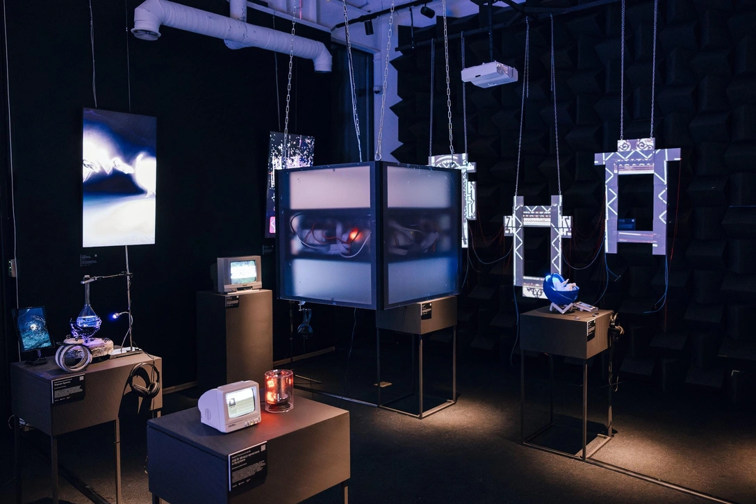 Художники также исследуют трансформацию внутреннего мира через цифровой опыт. Анастасия Федосова в инсталляции «Сон AI» размышляет о границах между сознанием человека и ИИ, а Евгений Абумов (abumov21) в проекте «2PjsndjnE» превращает роботизированную руку в метафору технологического бессмертия. Иван Кравчук в «Motion Concréte» преобразует движения человека в аудиовизуальные образы, а Мария Магус в VR-проекте «Transform» стирает границы между физическим и цифровым пространством.