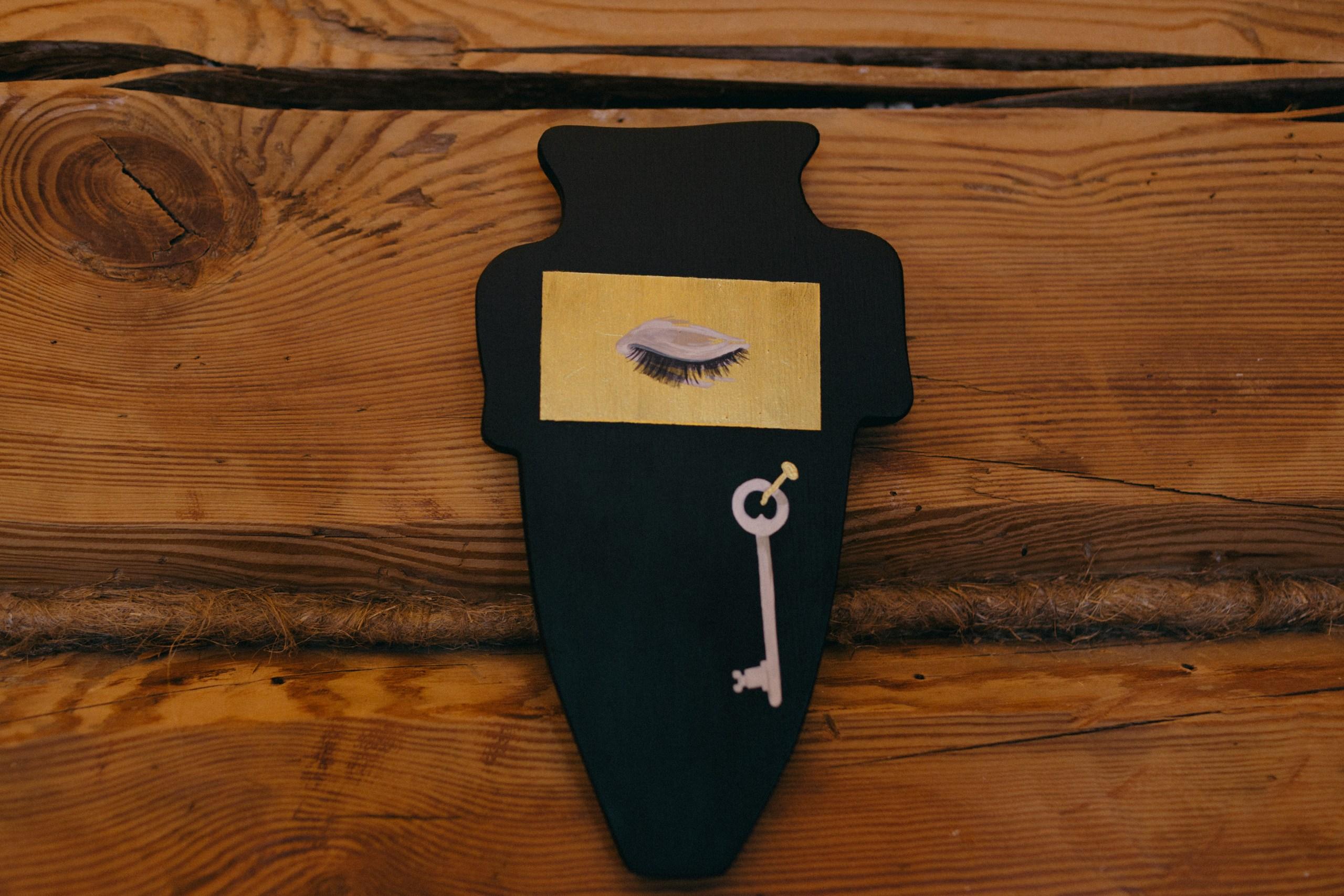 «Мне всегда был интересен диалог в искусстве, когда, например, привычная форма обретает непривычное содержание или смещение акцента кардинально меняет смысл. Поэтому идея „сузить“ многофигурный сюжет изгнания из Рая до лаконичного, сохранив традиционное оформление в духе золоторамных ренессансных триптихов, возникла сразу.