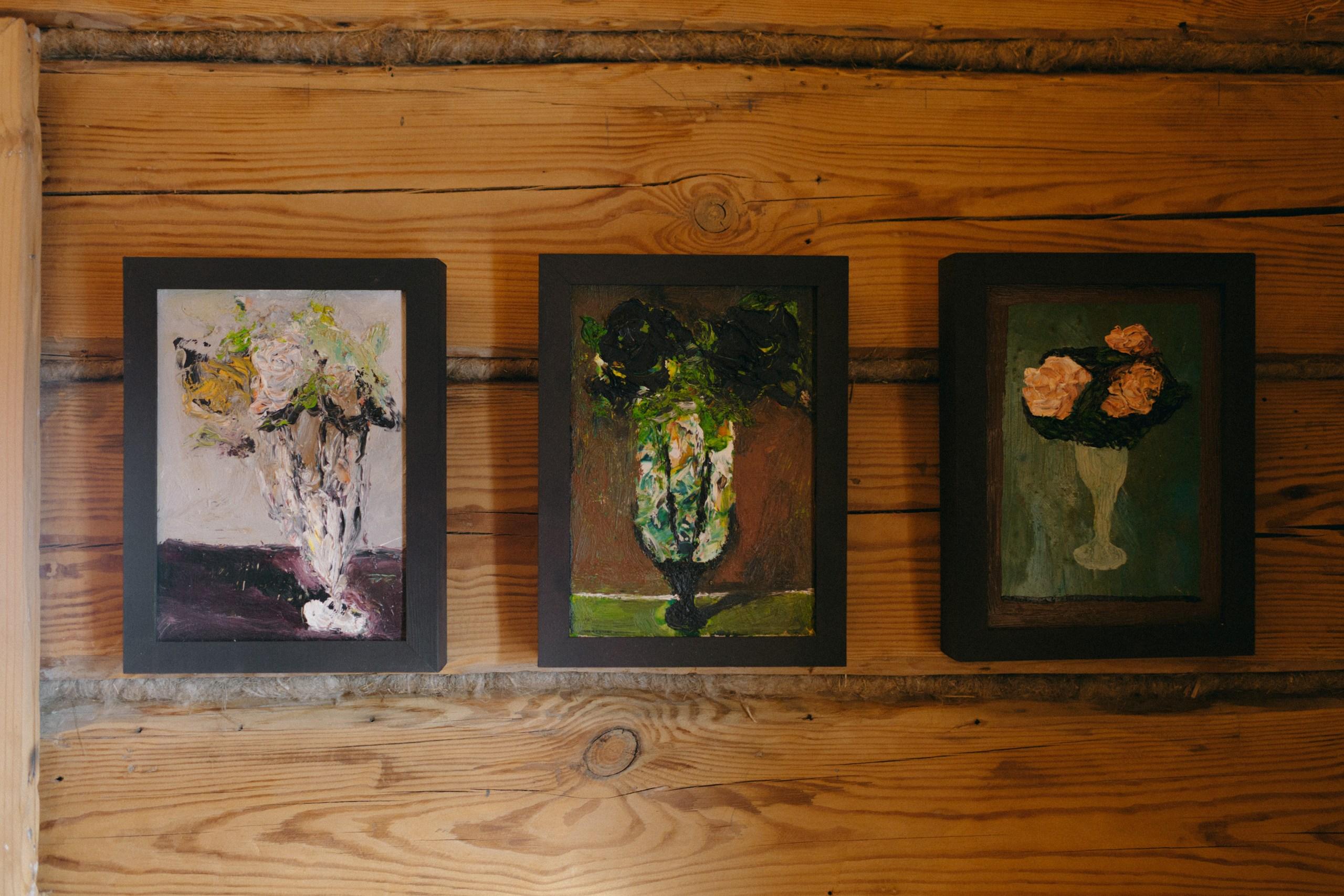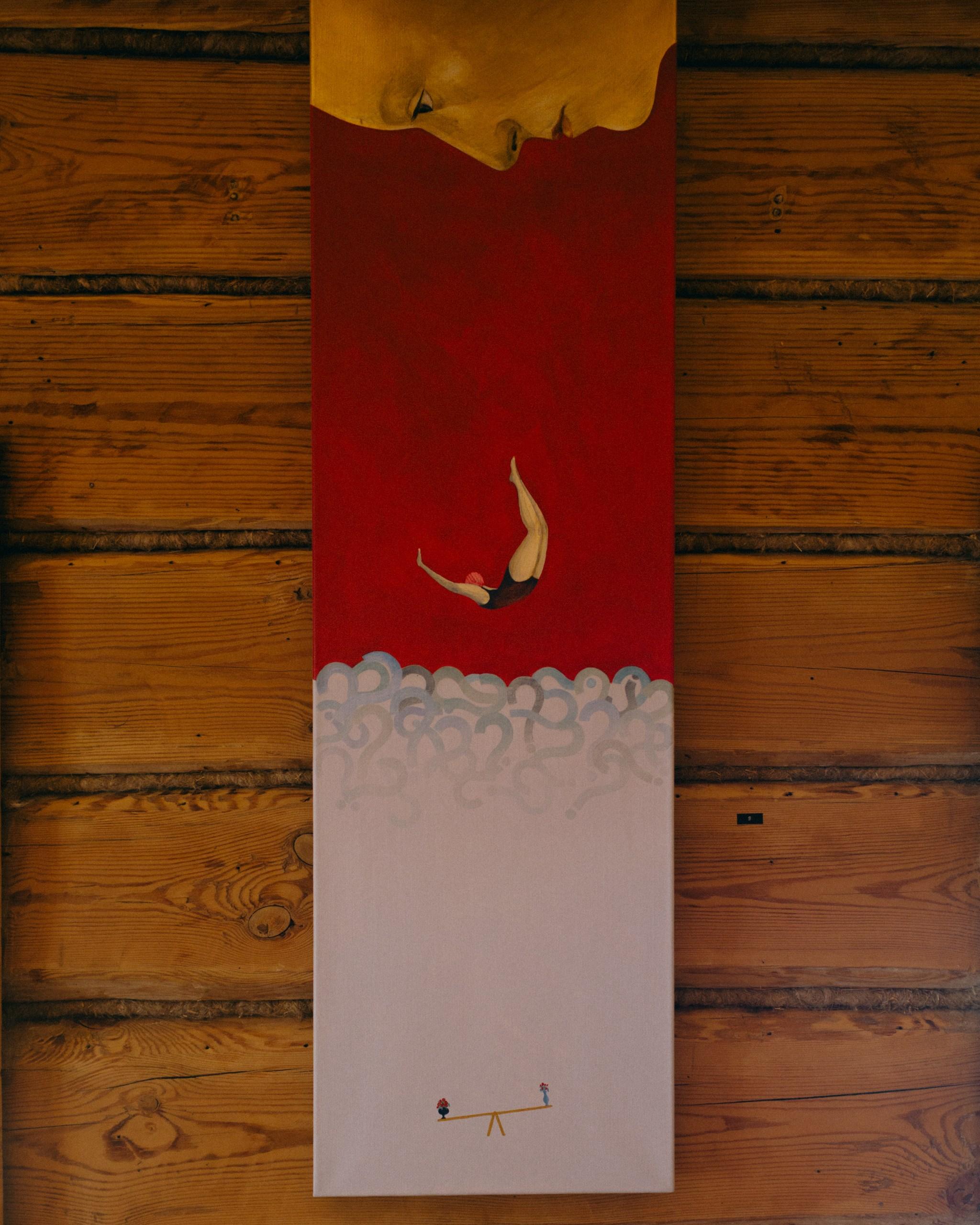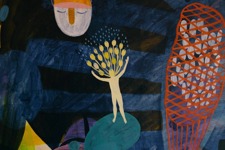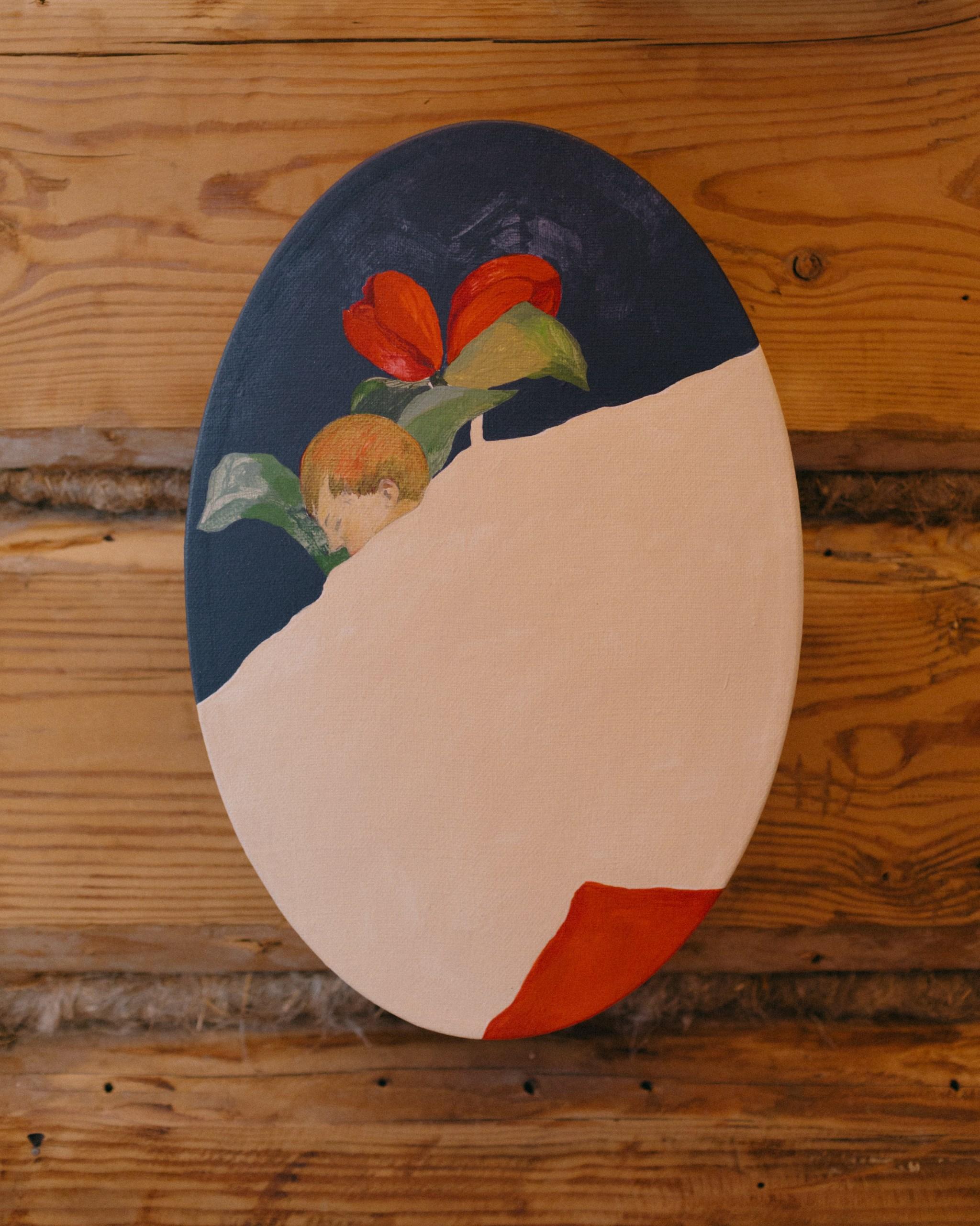Но потом появилось ощущение, что не хватает «земного» аспекта, и триптих превратился в квадриптих — история пополнилась еще одной створкой, собственно, с результатом этого изгнания. Бабушка, продающая «запретные плоды». Мне показалось, что этот образ достаточно ярко иллюстрирует результат изгнания. Все, что мы потеряли — бессмертие, вечную молодость, радость и простоту жизни и обрели — старость, увядание, смерть и прочие неприятности», — рассказывает о своей серии работ Залина Кантемирова.