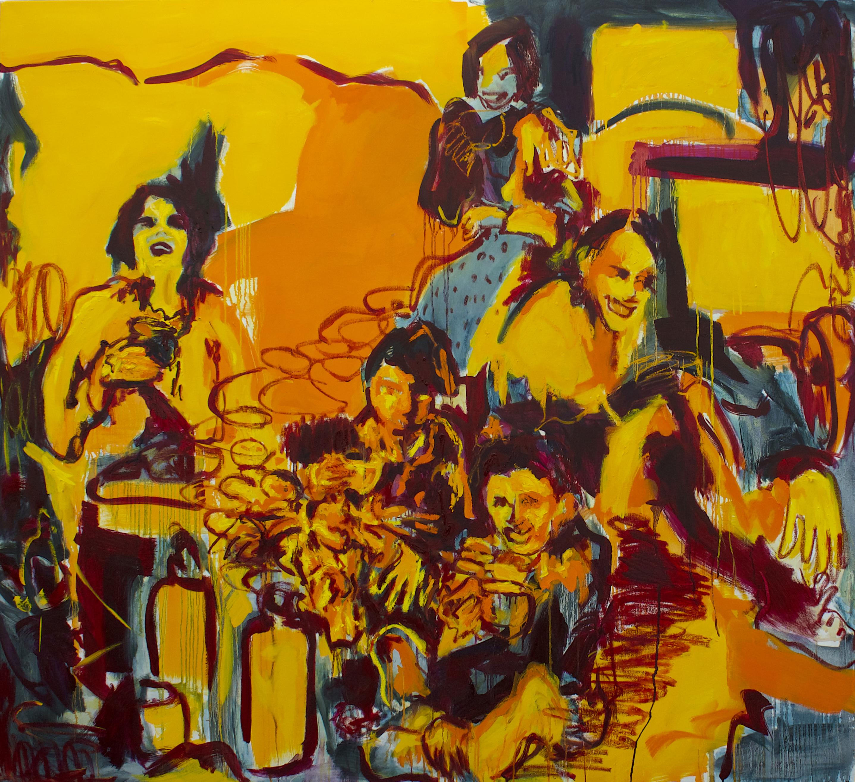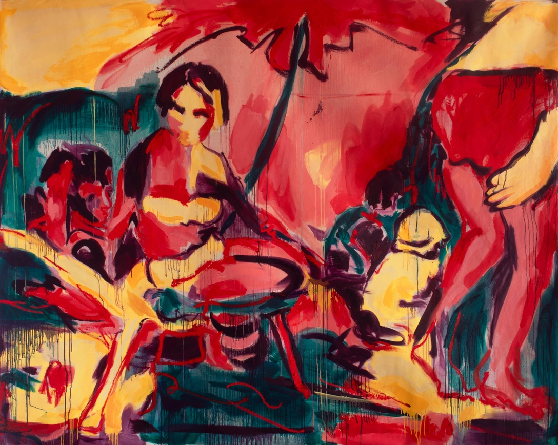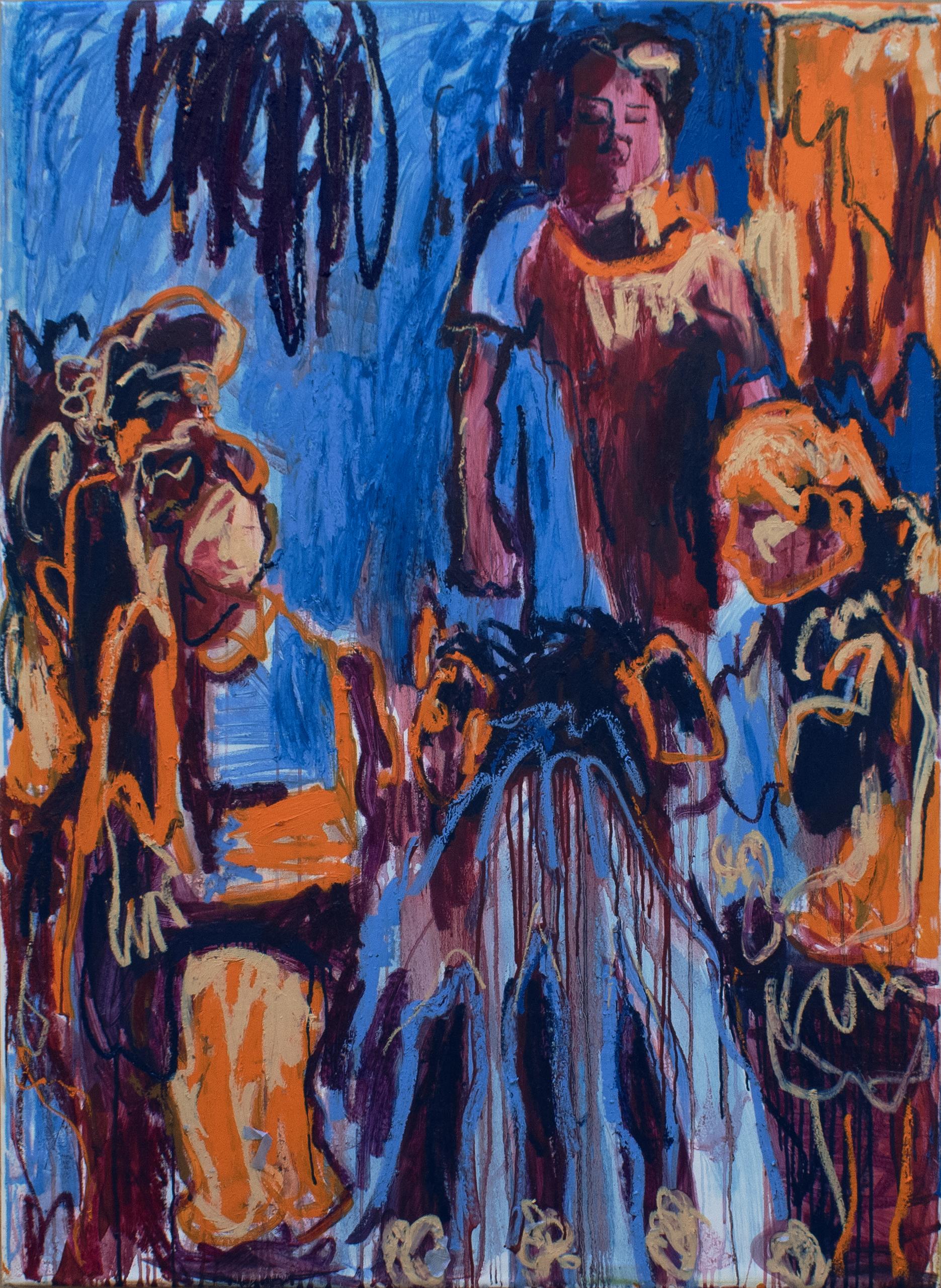 Перенося эти изображения с мелких фотографий на большой холст, Гранова делает из полотен портал между «сейчас» и «тогда». Для нее живопись — это телесный акт, способ оставить след в моменте, который уже не вернуть. Цвета на ее работах часто не связаны с оригиналом: яркие, иногда конфликтующие пятна передают волнение, страх неизведанного и чувство освобождения от ограничений бытия. Художница стремится дать голос каждому цвету, гармонизируя их споры на холсте.