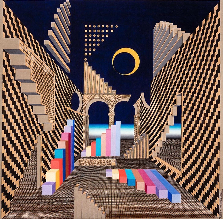 Стиль работ Педро Фридеберга (Pedro Friedeberg) легко узнаваем: это элементы готической архитектуры, оптические узоры. Он учился на архитектора, но позже сконцентрировался на художественном творчестве и дизайне.