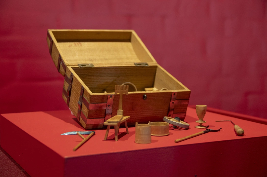Лаковая миниатюра из Палеха и Федоскино, как и открывающая экспозицию шкатулка из Ивановской области «Сказание о Петре и Февронии», знакомит с житиями различных святых в тончайших деталях. Павлопосадские платки, архангельские полотенца-«наспичники», вологодское кружево, московские лоскутные одеяла… Вместе с «классикой» видим и эксперименты: ковры Воронежской губернии, сотканные по журнальным схемам, и созданные в техники кубовой набивки скатерти с «трактирными» узорами демонстрируют, как традиция впитывала новые веяния, не теряя корней.