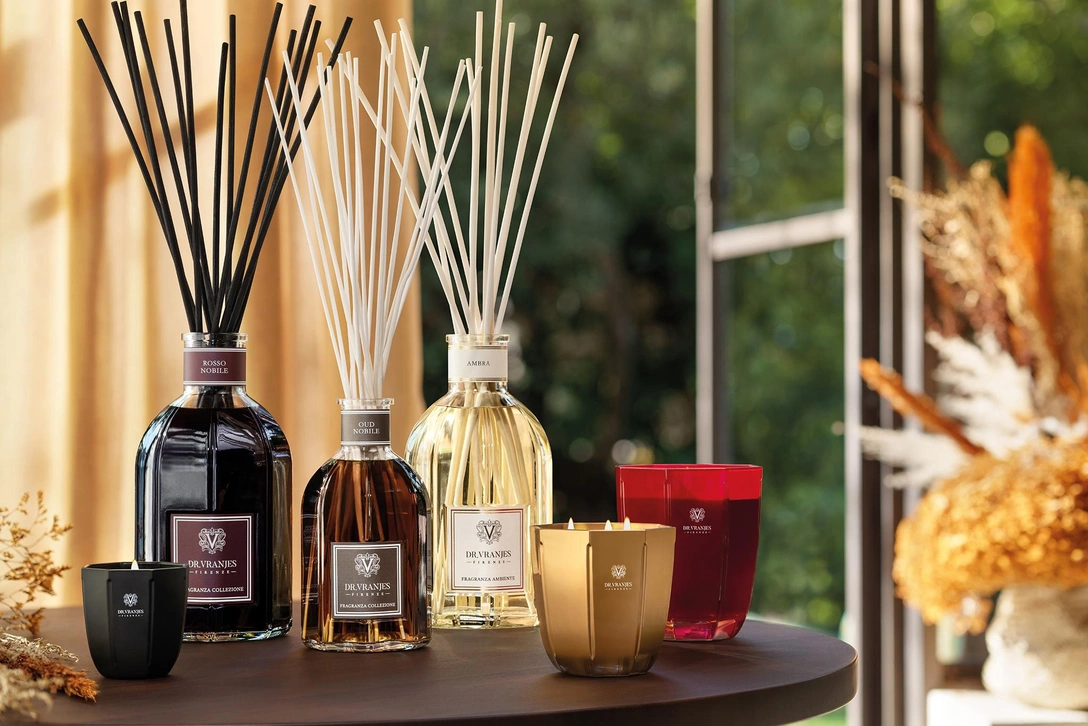 В коллекции представлены ароматические свечи, диффузоры, рефилы, автомобильный парфюм, есть и подарочные наборы. В палитре — более 2000 нот, из которых команда собирает действительно незабываемые композиции. Флаконы, диффузоры и свечи изготавливаются в Тоскане, а их дизайн вдохновлен знаменитым собором Санта-Мария-дель-Фьоре во Флоренции.