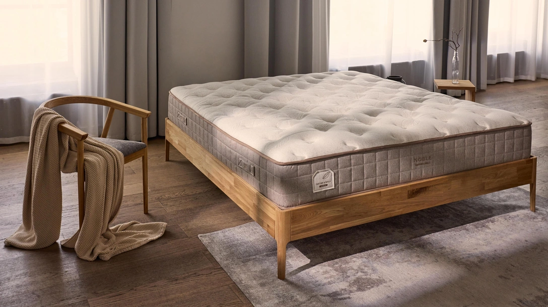 Самый мягкий матрас в новой линейке — Noble. Он обладает натуральным льняным чехлом, приятным на ощупь. В составе присутствует слой натурального латекса, благодаря которому матрас аккуратно поддерживает тело, повторяя каждую его линию.