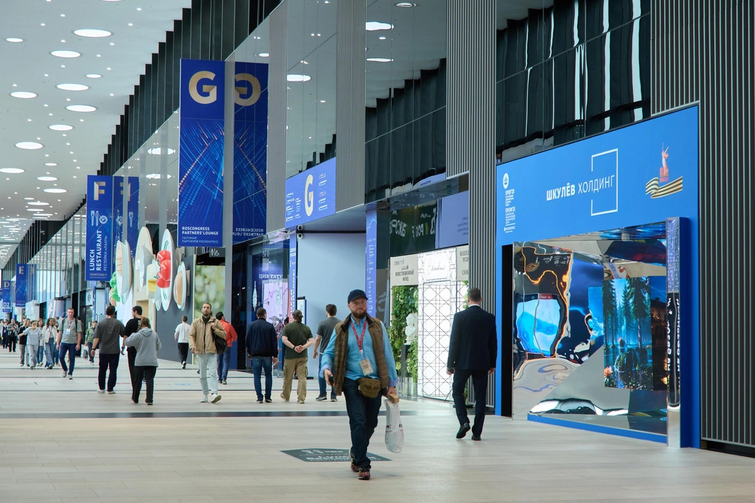 Стенд Шкулёв Холдинг представляет собой инновационную инсталляцию, предлагающую гостям форума глубокое погружение в концепцию интеграции технологий в окружающую действительность и природу.