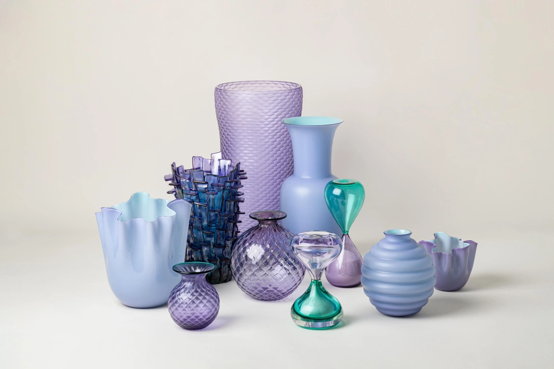 В коллекцию входят Deco от Наполеоне Мартинуцци, Fazzoletto от Фульвио Бьянкони и Паоло Венини, а также Opalino, Balloton и Balloton Fiori, Clessidre и Clessidre Sommerse, бокалы для шампанского Bollicine, ваза Ritagli от Фульвио Бьянкони и Battuto a Nido d’Ape Карло Скарпы.
