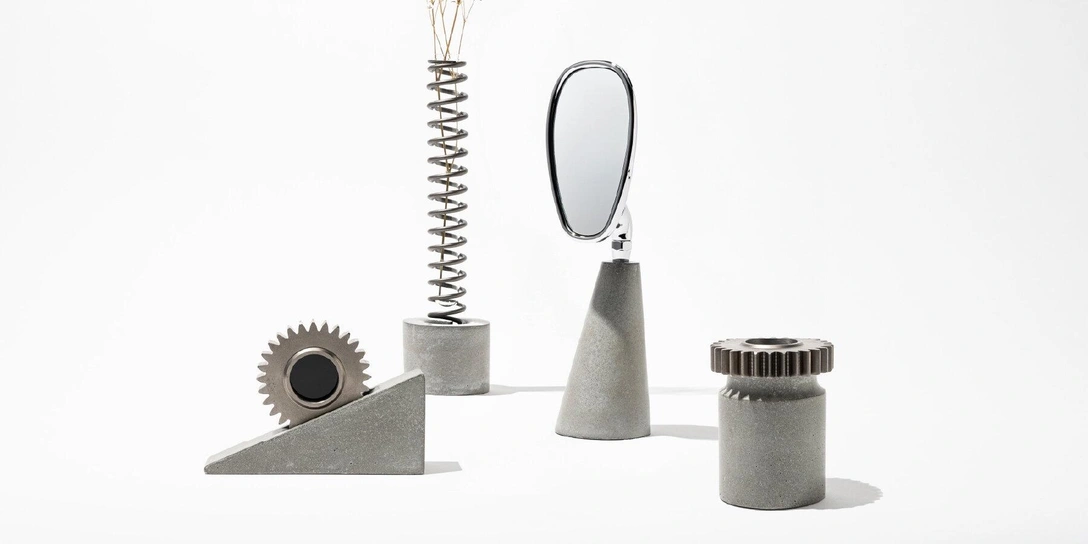 Проект «Пауза» Сигэи Мияты (Shigeya Miyata)— это серия функциональных объектов, в которых используются снятые с производства компоненты мотоциклов Honda и отливки из бетона. Проект исследует взаимосвязь между движением и неподвижностью: автор намеренно ограничивает бетоном детали, изначально предназначенные для движения. Извлеченные из обычного контекста элементы возвращаются в новом качестве, в виде предметов домашнего обихода: зеркала, ваз, фоторамок, подставки для канцелярии.