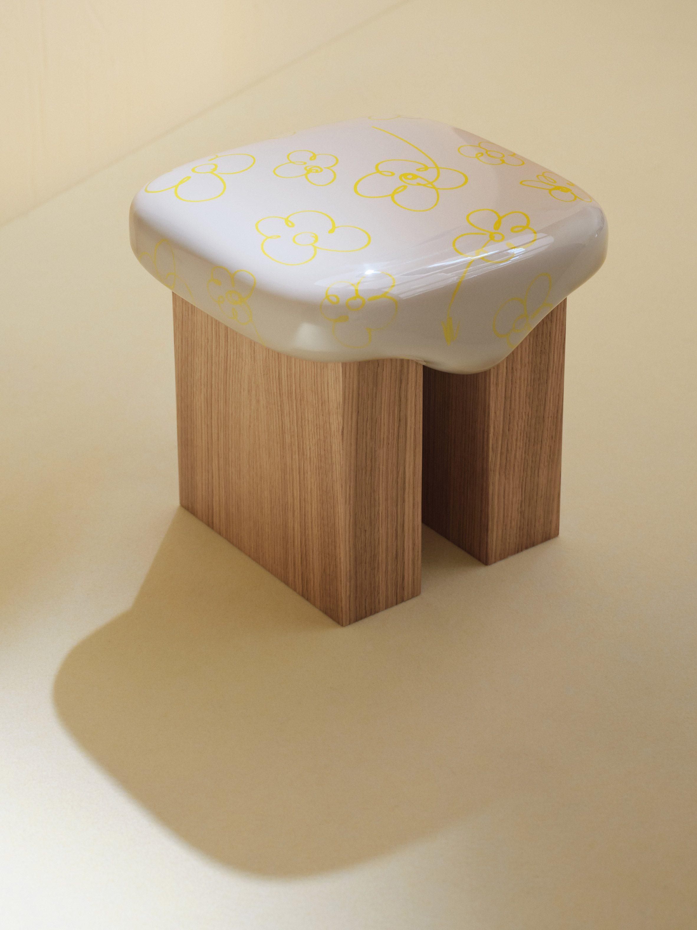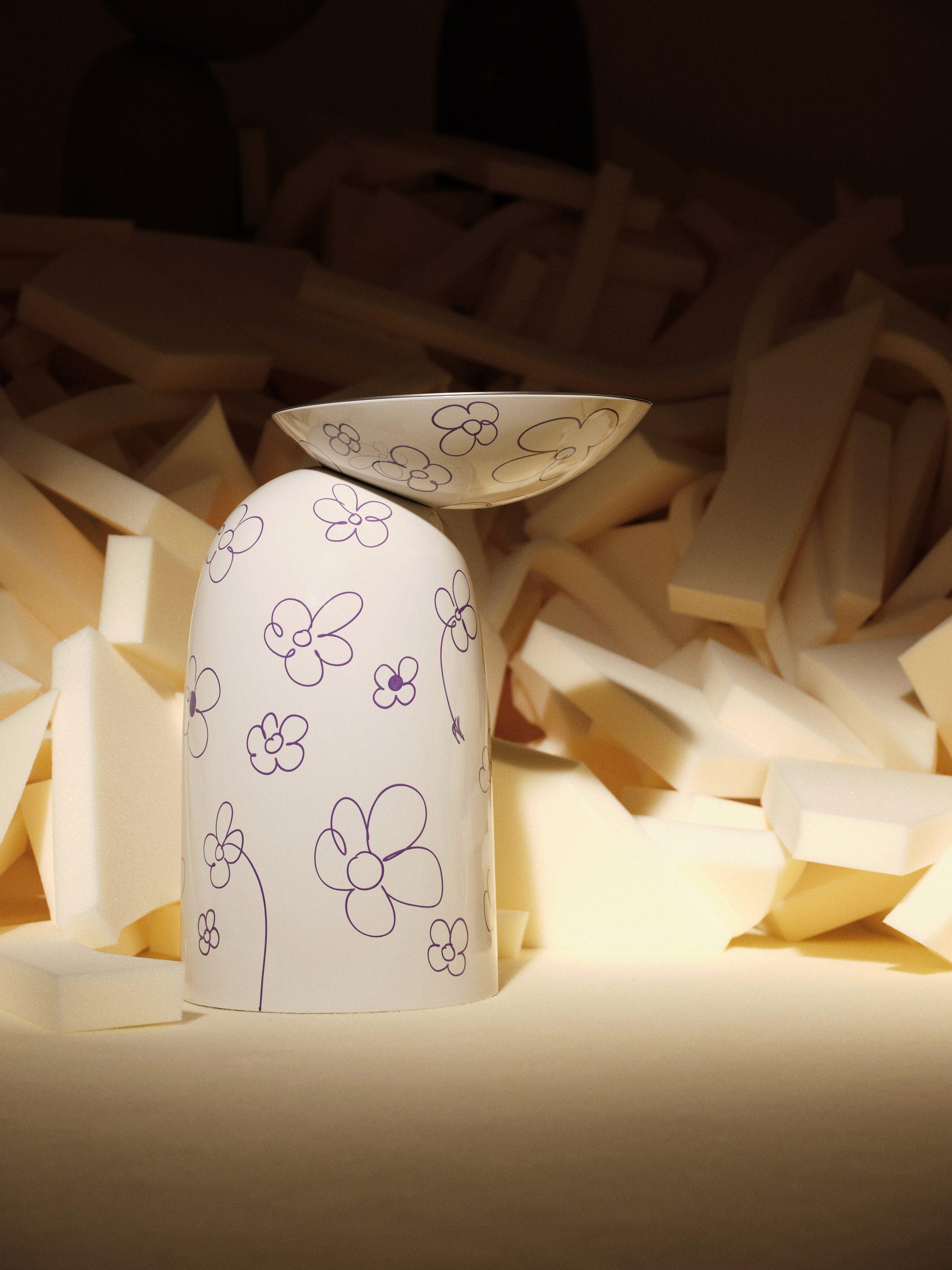 Главный из них — столик Pingu Side Table. Его украсили рисунками цветов. Но рисовали их особенным способом: с закрытыми глазами. Основатель Tableau Юлиус Вернес Иверсен (Julius Værnes Iversen) говорит, что уже десять лет рисует цветы вслепую — это для него как медитация.