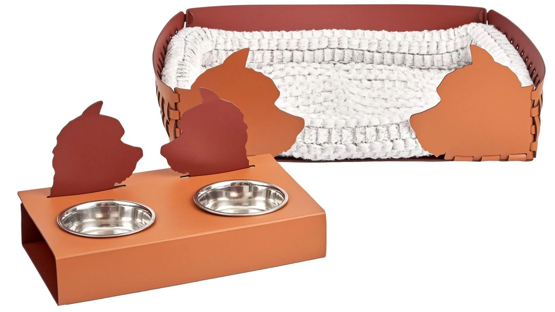 В коллекцию аксессуаров для животных Anima вошло пять предметов: корзины-лежанки трех размеров, домик для собаки и подставка с мисками. Эскизы всех изделий разработала сама Екатерина. В основе дизайна — силуэты кота и собаки, это реальные мордочки ее домашних питомцев.