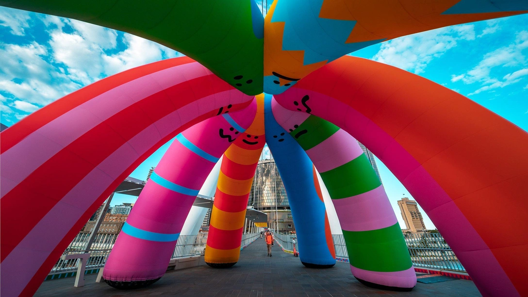Надувные купола и арки появились на мосту Невилла Боннера, мосту Доброй воли и новом мосту Кенгару-Пойнт в рамках Брисбенского городского фестиваля. Они стали частью пешеходного прогулочного маршрута Walk This Way: горожане могут исследовать город и вместе с этим знакомиться с идеями художников.