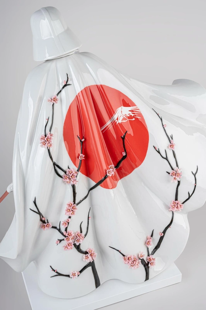 Главный символ темной Галактической империи обретет белоснежный вид, а его длинный плащ украсит не только хиномару — красный круг, символизирующий восходящее солнце, с силуэтом горы Фудзи в центре, но и цветущая сакура с раскрывающимися бутонами, вылепленными вручную. Этот вариант фигурки посвящен празднику ханами — сезону цветения сакуры, любоваться которой приезжают в Японию со всего мира.