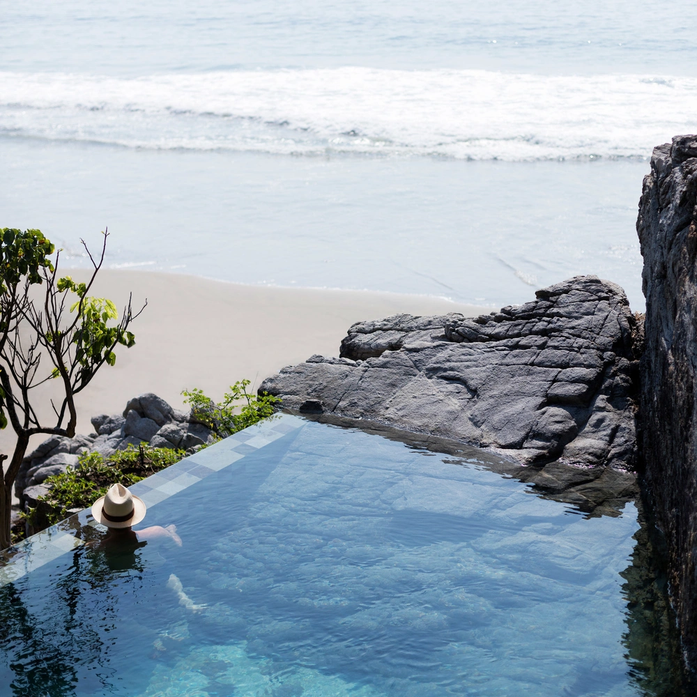 Вилла Casa Acantilado, построенная по проекту Zozaya Arquitectos, находится на берегу Тихого океана в популярном туристическом районе Мексики. Студия славится своим умением создавать объекты с минимальным воздействием на природу и максимальным использованием местных материалов и ремесленных традиций. И данный проект не исключение. Дом практически прилепился к высокому утесу, он состоит из двух этажей и увенчан сверху соломенной крышей — как местные мексиканские жилища.